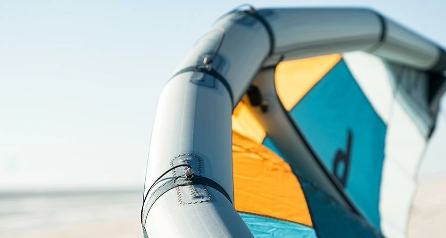 Der wellig geformte Dacron-VerstĂ€rkungsstreifen an der Trailing Edge, geht weich in eine Segeltuchdoppelung ĂŒber. Die Konstruktion erhöht die Langlebigkeit des Produkts bedeutend.